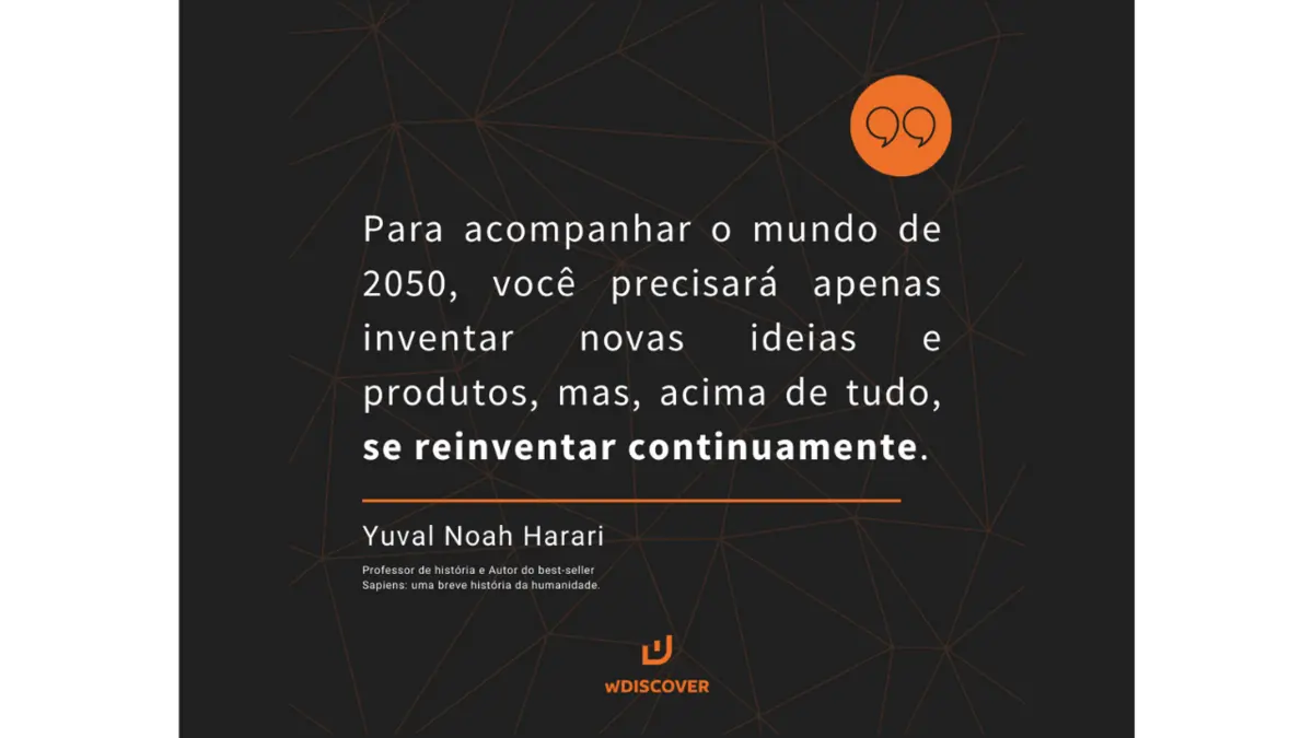 “Para acompanhar o mundo de 2050, você precisará apenas inventar novas ideias e produtos, mas, acima de tudo, se reinventar continuamente.” Autor Yuval Noah Harari - Professor de história e Autor do best-seller Sapiens: uma breve história da humanidade.